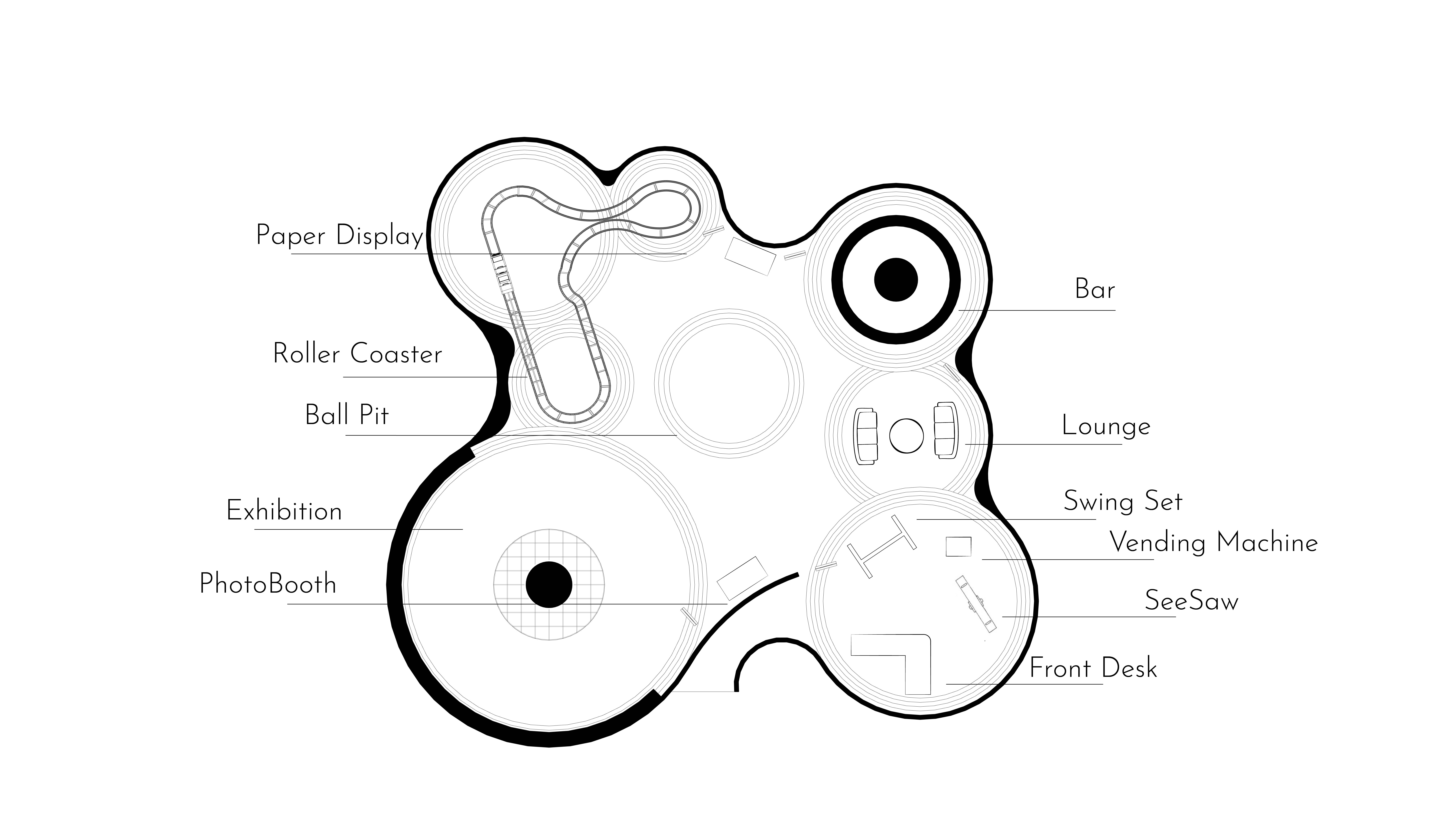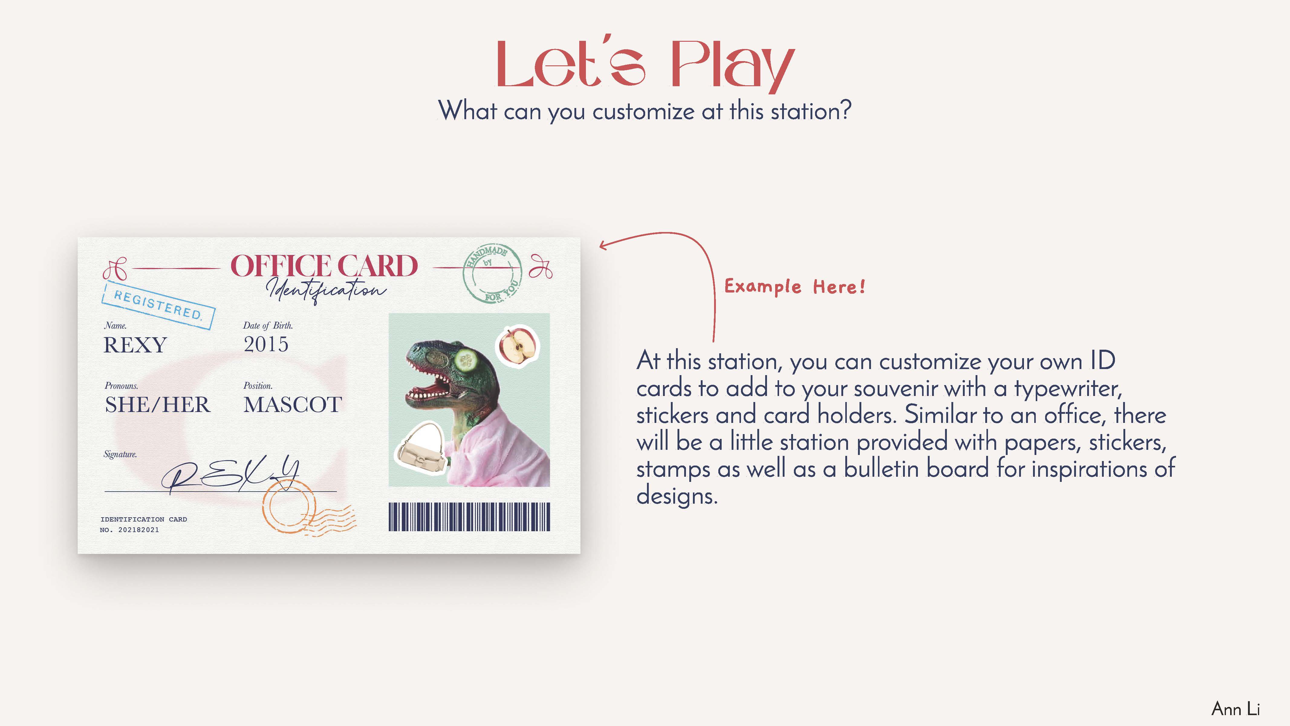 It is intended to unlock your inner child, giving you freedom to find yourself outside of societal pressures and adult responsibility. Using office motifs, it is a surrealist, childhood, nostalgic twist on your corporate office life, where you can reclaim your freedom of play.